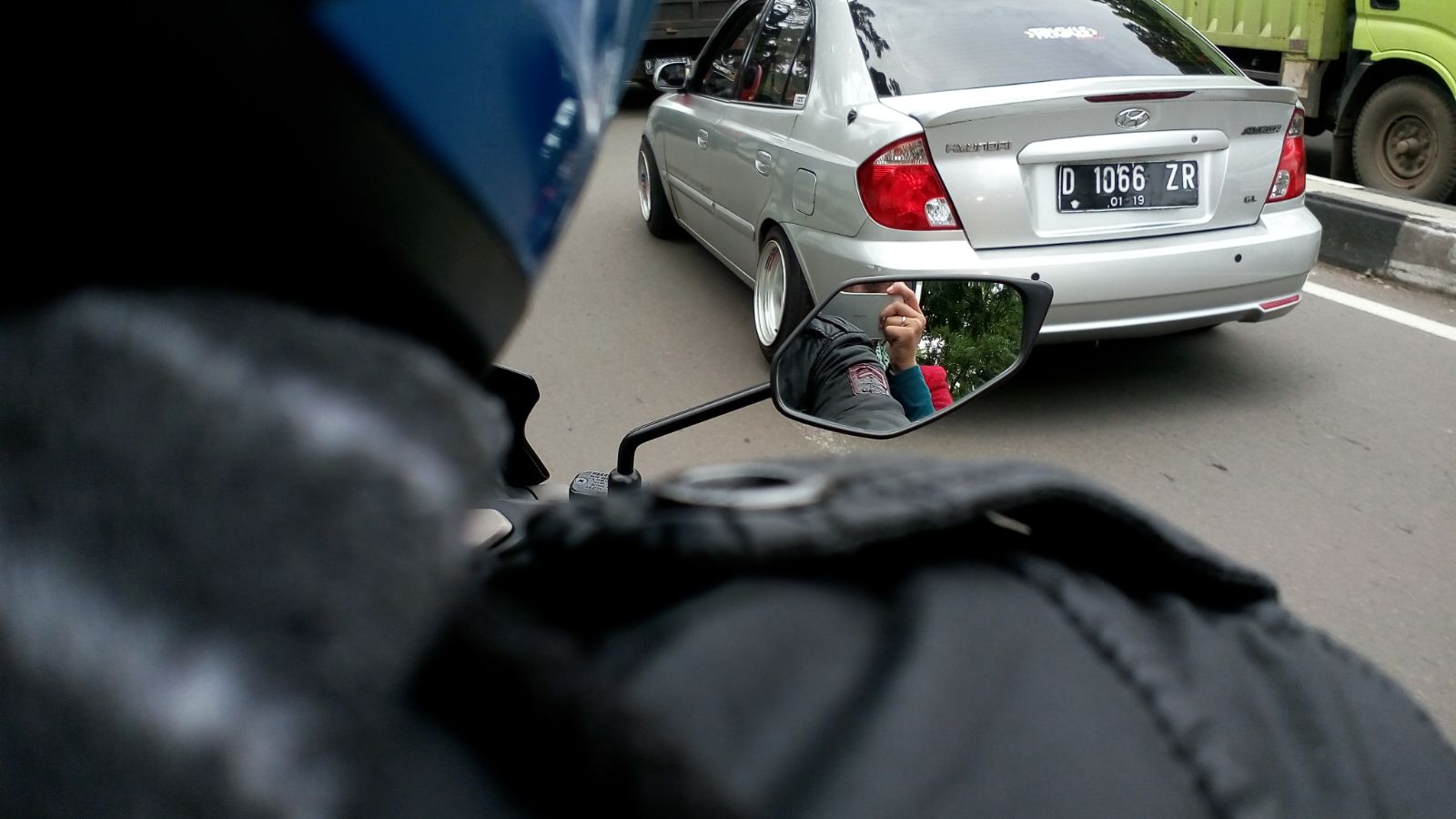 Hai, hello.., apa kabarnya hari ini, semoga sehat selalu. Sesuai judul diatas, ketika saya sedang riding santai deng istri, terlihat pemandangan yg tidak biasa, sebuah mobil dengan ban nya yg mencong.
