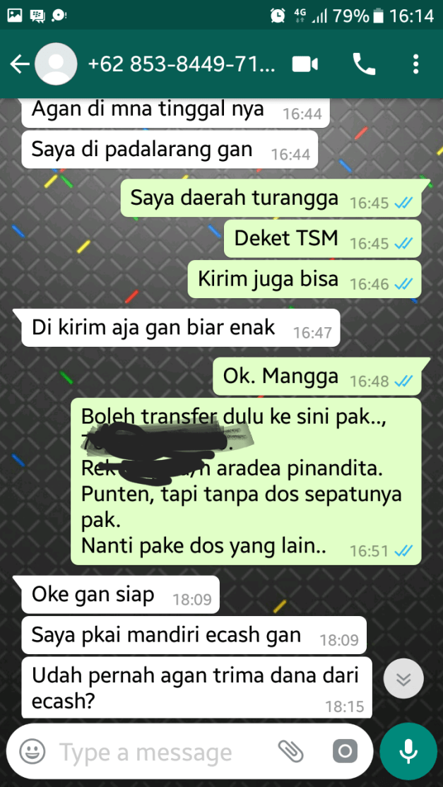 Langsung saya simpulkan ini adalah penipuan dan tidak mau meladeni lagi. Dan ternyata benar kan..? Kalo misalkan niatnya bener pengen beli pasti dia koperatif dengan apa yg saya minta, ini langsung “heup” ilang aja ngga ngasih kabar lagi.