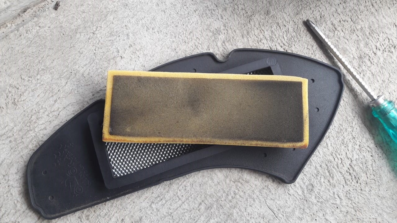 Jadi seperti yang saya bilang tadi, filter kimora khusus bagi rider yang demen ngoprek sendiri motornya. Setelah dibuka filter udaranya, box bagian dalam bersih, tidak ada endapan debu sama sekali, berarti daya filtrasinya maksimal iniih.