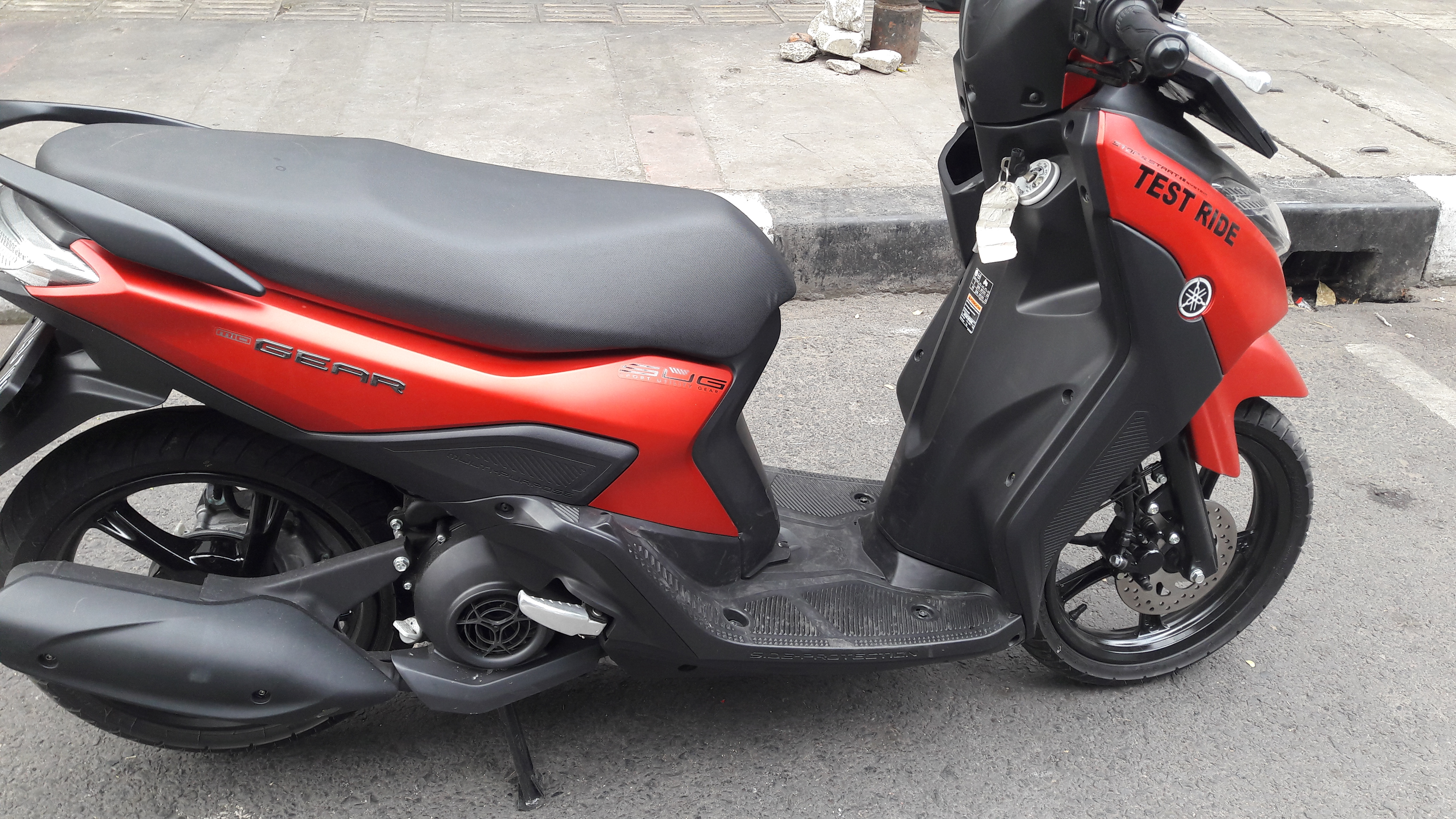 Hai, hello.. apa kabarnya hari ini? semoga sehat selalu. Pulang dari dealer resmi, bawa oleh-oleh lagi. Sewaktu maen ke beres yamaha di jl asia afrika, untuk beli spare part, terparkir motor berkelir merah doff, dengan tulisan “test ride”. Saya pun hanya iseng menanyakan untuk test ride, karena gak bawa helm. Basa-basi gak penting dikit, karena sering setor muka di area bengkel, π “oh gpp, kalo helm mah pak, pake punya saya aja. π” gitu katanya, jadi dikasih lah kunci motor gear 125 ini.