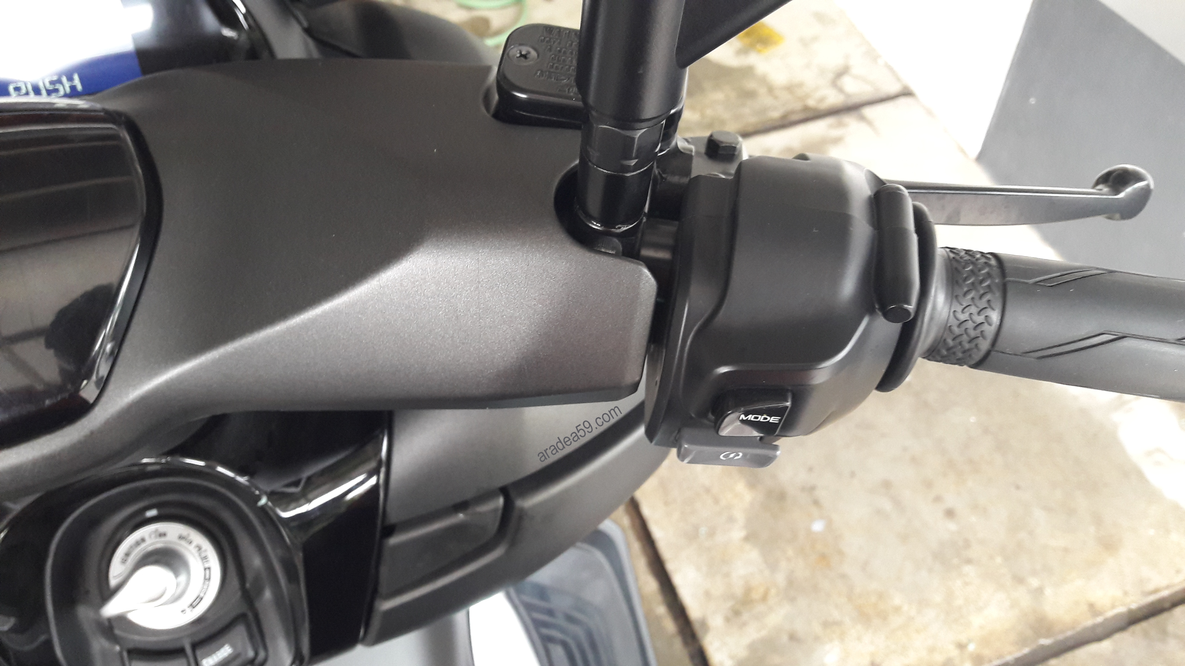 Area saklar kana polosan aja, hanya ada tombol starter dan riding mode.