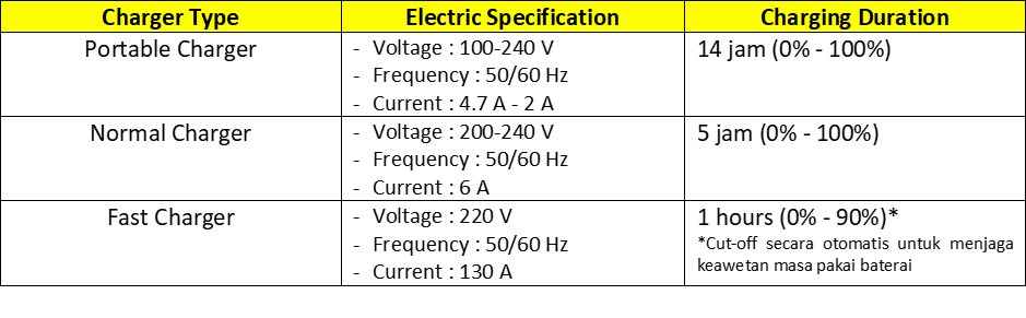 Kepraktisan dan kemudahan bagi para pengguna E01 dalam mengisi daya baterai kendaraan diberikan oleh Yamaha melalui hadirnya 3 opsi charger yang tersedia, yaitu Fast Charger, Normal Charger, dan juga Portable Charger.