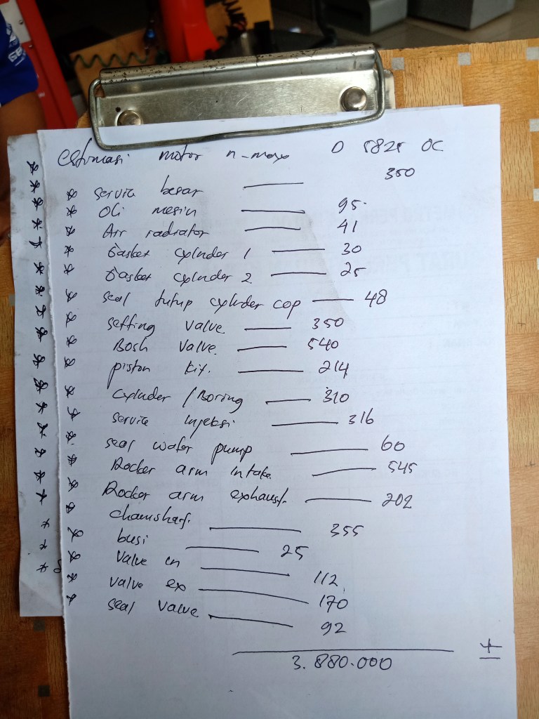 Jam 4an dapet pesan whatsapp dari mekanik, beserta rincian estimasi harga sparepart dan jasa pengerjaan. Melihat total estimasi,, reflek saya ngucap AllahuAkbar…!!!.